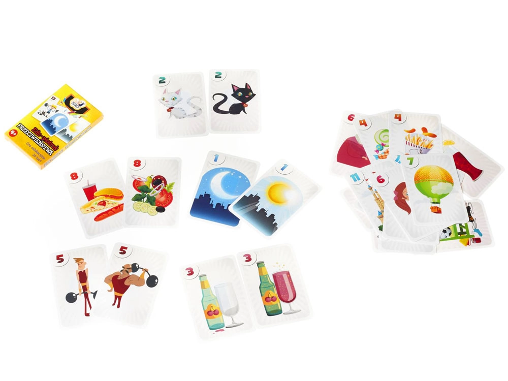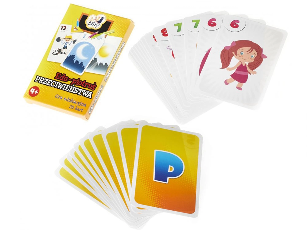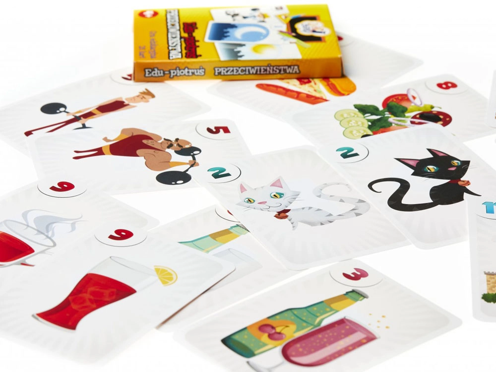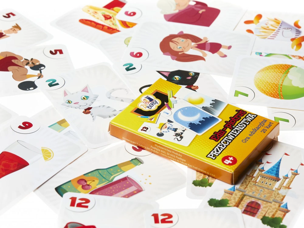 Setul conține 25 de cărți cu ilustrații colorate: 12 perechi care prezintă imagini cu sensuri opuse și 1 carte „Negrul Petru”.