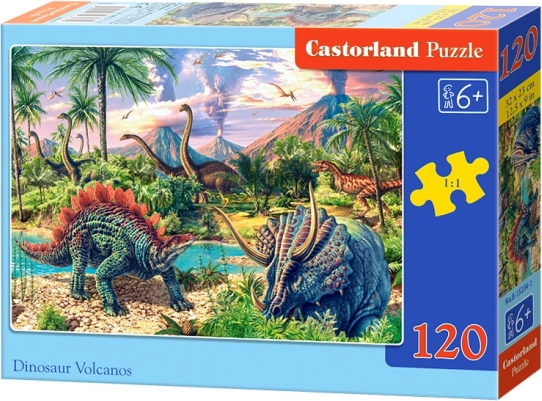 Descoperă puzzle-ul distractiv și educativ cu motivul Dinosaur Volcanos. Datorită celor 120 de piese și culorilor vii, copiii își exersează gândirea logică, recunoașterea formelor și a culorilor și învață răbdarea și concentrarea. După asamblare, rezultă o imagine de calitate cu dimensiunea de 32 × 23 cm, care îi va încânta pe toți iubitorii de dinozauri.