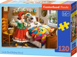 Puzzle colorate pentru copii cu motivul Scufița Roșie, conțin 120 de piese și, după asamblare, formează o imagine de 32 × 23 cm. Execuție de calitate, culori intense și un nivel de dificultate ideal pentru copii de aproximativ 6 ani, care susțin răbdarea, concentrarea și dezvoltarea imaginației.