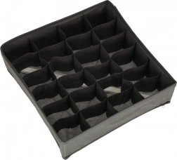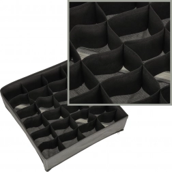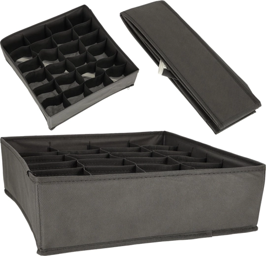 Un organizator practic pentru sertar transformă haosul într-un sistem clar. Datorită celor 24 de compartimente separate, găsiți imediat ceea ce căutați – fără a răscoli grămezi de rufe. Culoarea gri neutră și marginile discrete se potrivesc în orice dormitor sau dressing.
