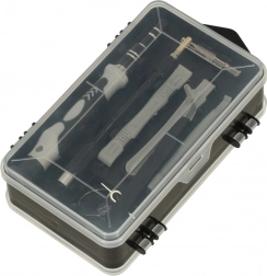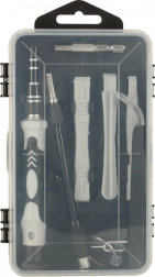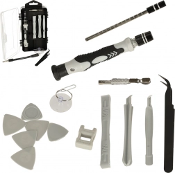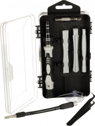 Mâner, adaptoare, leviere de deschidere, pensetă, ventuză, cheiță pentru SIM și magnetizator/demagnetizator – tot ce este necesar pentru demontări și reparații sigure.