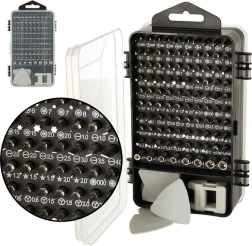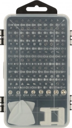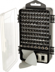 Pachetul include 96 biți diferiți (Torx, Torx cu orificiu, Hex, drepți, Phillips, PZ, pătrați, triunghiulari, pentalobe, microstix, tubulare și alții), prelungitor flexibil pentru zone greu accesibile, unelte de deschidere, ventuză, pensetă și magnetizator/demagnetizator pentru o prindere mai bună a șuruburilor. Husa dublă, cu poziții inscripționate, asigură depozitare clară și găsirea rapidă a piesei potrivite.