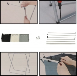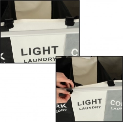 Structura stabilă din metal și țesătura rezistentă Oxford 600D garantează durabilitate. Coșul poate fi pliat rapid și transportat cu ajutorul mânerelor integrate, iar îmbinarea părților este ușoară datorită benzii arici (Velcro) rezistente.