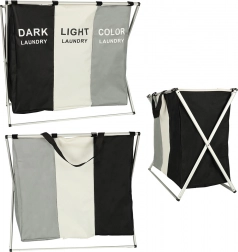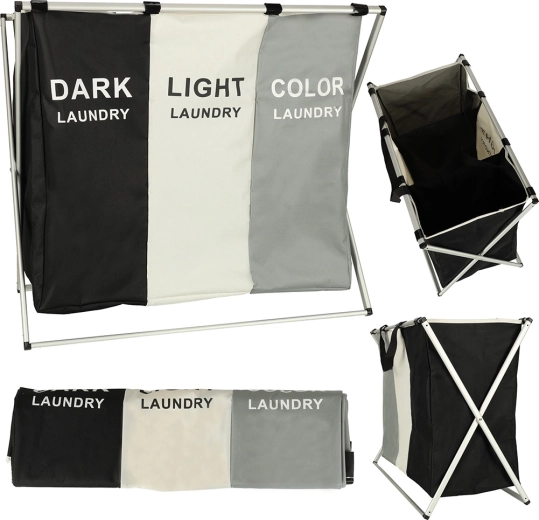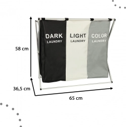 Fără sortări îndelungate ale rufelor înainte de spălare. Acest organizator încăpător oferă 3 saci separați cu marcaje clare pentru o orientare ușoară. Volumul total de 135 litri (3 × 45 l) găzduiește rufele întregii familii, în timp ce dimensiunile compacte de 65 × 36,5 × 58 cm se potrivesc și în spații mai mici.