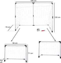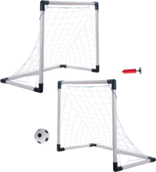 Poartă de fotbal pentru copii 2în1 este o variantă excelentă pentru a implica copiii dumneavoastră în activități sportive direct în grădina voastră. Poarta poate fi ușor asamblată în două mai mici sau una mai mare, astfel încât să se adapteze oricărui spațiu. Pachetul include și o minge și o pompă, astfel încât să puteți începe să jucați imediat.