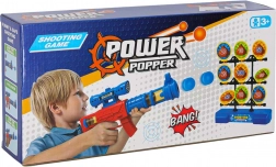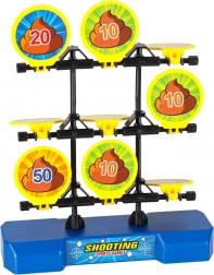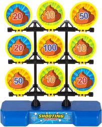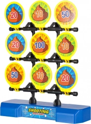 Deschideți turneul de tragere la țintă! Încărcați blasterul din față cu bila, armați pompa și doborâți cu foc ținta cu cel mai mare punctaj. Nouă ținte rabatabile cu valori (10–100) se răstoarnă după lovire, astfel vedeți imediat câte puncte obțineți. Bilele moi din spumă sunt blânde cu mobilierul și sigure pentru joc în interior și în exterior.