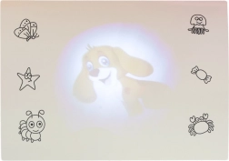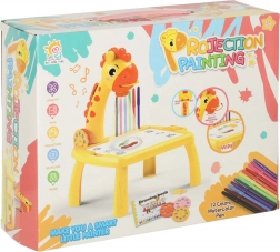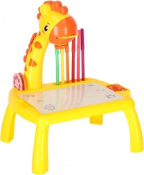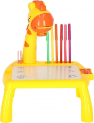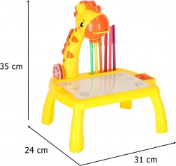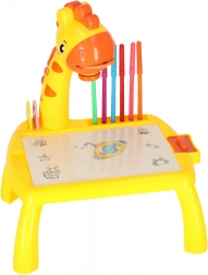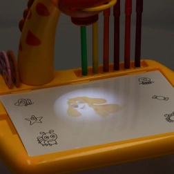 Acest drăgălaș proiector de masă în formă de girafă face mai distractiv orice moment de creație. După introducerea unuia dintre cele trei discuri cu imagini și pornirea proiecției, pe suprafață apare un motiv pe care copiii îl pot contura cu ușurință. Datorită planșei șterse pot exersa din nou și din nou – fără a irosi hârtie.