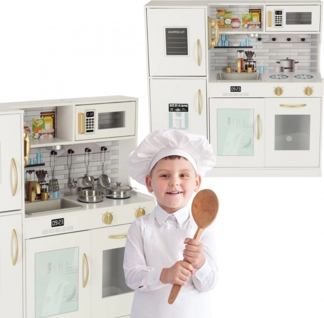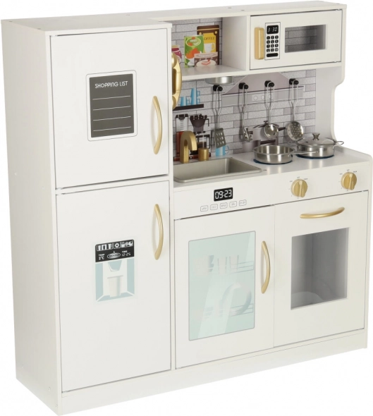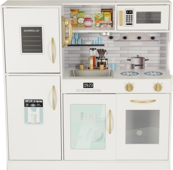 Bucătăria include frigider cu congelator, mașină de spălat vase, cuptor cu microunde, aragaz și cuptor, ceea ce o face realistă și interactivă. Pe frigider există chiar și un telefon pentru a suna pentru rețete de familie. Designul bucătăriei, cu culoarea albă și elemente aurii, se potrivește perfect în fiecare cameră a copilului.