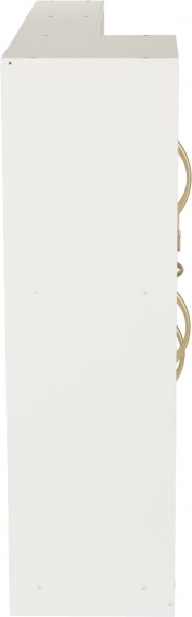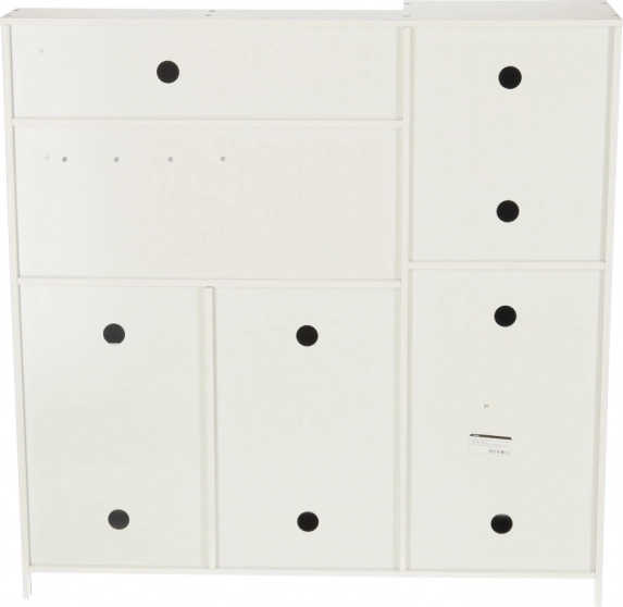 Construcția din lemn alb cu accesorii metalice sub formă de oală, tigaie și ustensile de bucătărie permite o utilizare versatilă și este un accesoriu de stil pentru camera copilului.