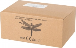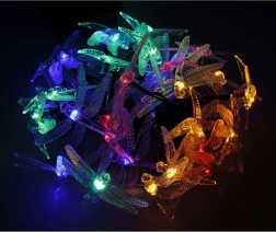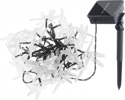 Ghirlanda luminoasă solară cu delicate libelule transformă orice spațiu exterior într-un loc primitor pentru relaxare. Ziua este o decorațiune elegantă, iar după lăsarea serii strălucește cu o lumină plăcută multicolor, punând în valoare arbuștii, pergola și balustrada balconului.