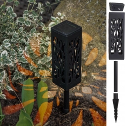 Construcția din plastic de calitate rezistă la ploaie și praf. Montajul este rapid – fixați lampa pe țăruș și o înfigeți în pământ.