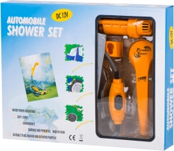 - Pară de duș, furtun cu pompă submersibilă și fișă 12V, cârlig dublu, ventuză, 2× garnitură, săculeț de depozitare