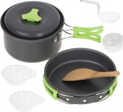 Măriți confortul campingului cu setul de vase turistic. Datorită construcției ușoare și durabile din aluminiu, puteți încălzi cu ușurință apa sau pregăti mâncare delicioasă în natură. Mânerele pliabile permit o manipulare ușoară, și când ați terminat, vasele se pliază cu ușurință în geanta practică.