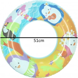 Colacul gonflabil ușor și ușor de transportat, cu diametrul de 51 cm, este ideal pentru primele jocuri în apă. Datorită graficii atractive cu pinguini, îi motivează pe copii să se miște în apă și, în același timp, le sporește încrederea în timpul învățării înotului.