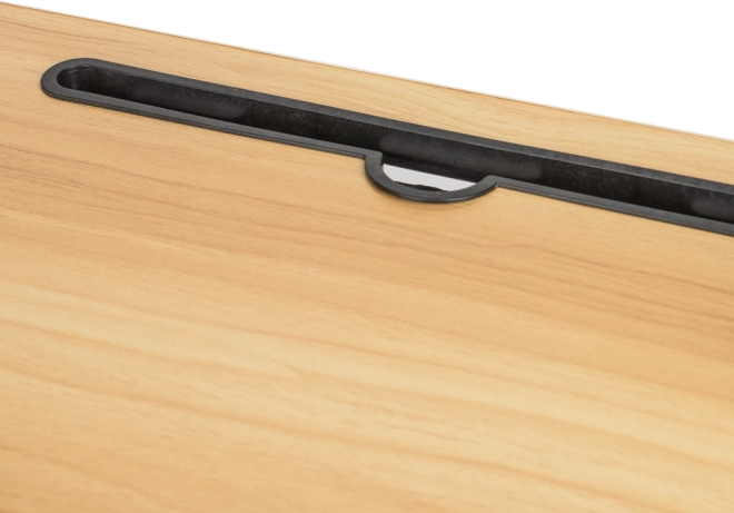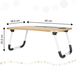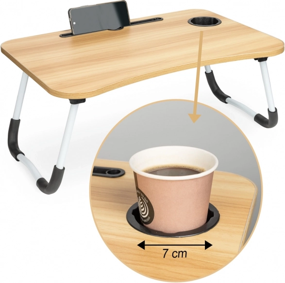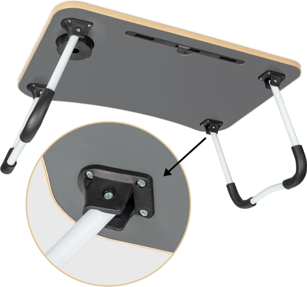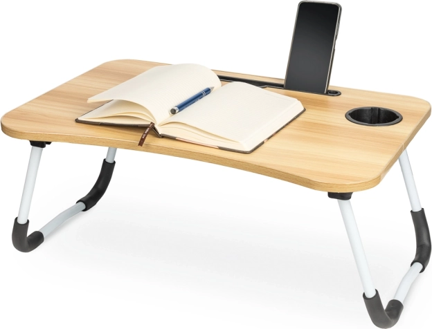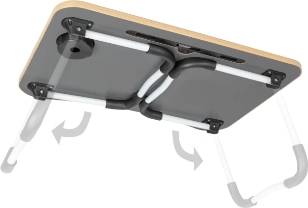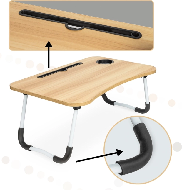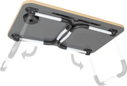 Masa este echipată cu un slot pentru tabletă sau telefon și un orificiu pentru cabluri, ceea ce îi crește practicitatea. Dacă căutați un asistent perfect pentru munca confortabilă din orice loc, această masă pliabilă pentru laptop este alegerea potrivită.