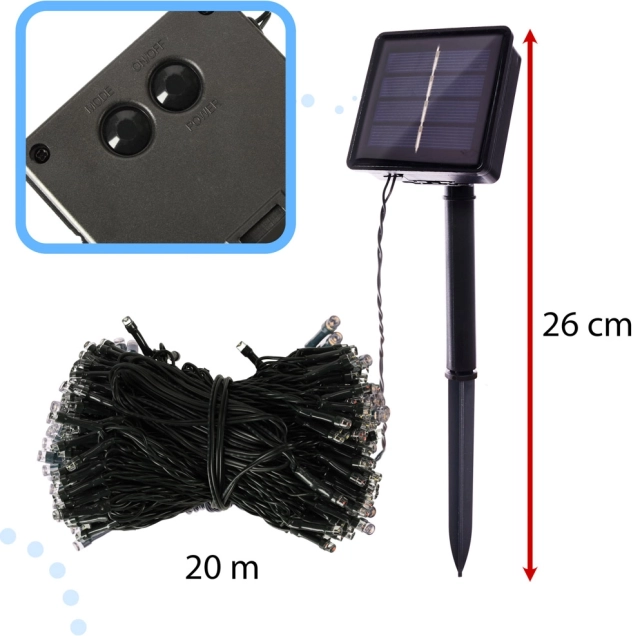 Setul include 1 panou solar și 1 șir luminos de 20m.