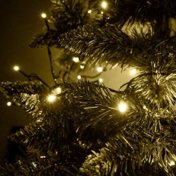 Ghirlanda luminoasă LED elegantă de Crăciun vă va lumina locuința cu o lumină plăcută, alb cald. Cablul lung de 10 m, cu 100 de diode LED economice, va decora fiabil bradul, coronițele și pervazurile. Cablul de alimentare verde se ascunde ușor printre crenguțe, pentru a se evidenția doar lumina.