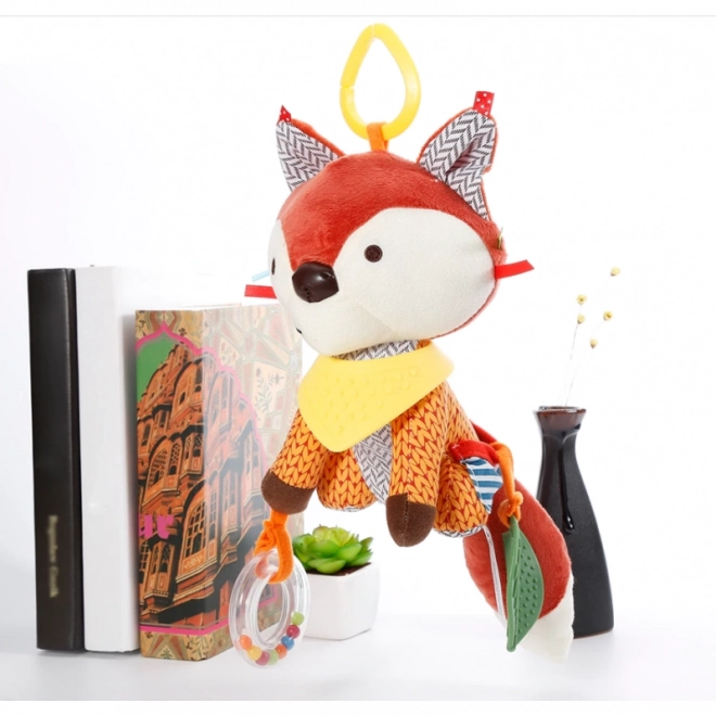 Jucăria în formă de vulpe prietenoasă încântă cu realizarea sa frumoasă. Fabricată din diferite materiale, oferă texturi și caracteristici variate. Susține percepția senzorială la copiii mici și explorarea lumii înconjurătoare.