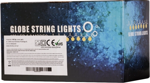 Protecția IP44 permite utilizarea și în spații exterioare acoperite. Alimentarea la rețea asigură funcționare stabilă, iar conectorul practic permite conectarea unei ghirlande suplimentare.
