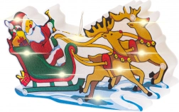 Această decorațiune colorată de Crăciun, cu Moș Crăciun în sănii și reni, se aprinde într-o lumină alb cald și oferă interiorului tău o notă festivă și primitoare. Datorită motivului vizibil pe ambele părți, arată grozav din ambele părți ale ferestrei și atrage privirile trecătorilor.