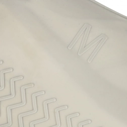 Partea inferioară cu model antiderapant asigură un pas sigur pe trotuare sau asfalt ude. Husele sunt reutilizabile și ușor de curățat, astfel încât te vor servi fiabil pe ploaie și pe drumuri noroioase.