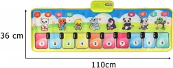 Acest covoraș muzical pentru copii, moale și portabil, transformă fiecare pas sau atingere într-un ton plin de bucurie. Cei mici pot descoperi sunetele a opt instrumente muzicale (pian, violoncel, acordeon, saxofon, xilofon, clarinet, chitară, flaut), pot cânta la 10 clape numerotate și pot asculta 10 melodii integrate. Ideal pentru dezvoltarea auzului, ritmului și motricității.