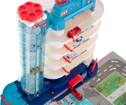 Cinci etaje cu rampe și trasee oferă o mulțime de scenarii – de la parcare la coborâri pline de acțiune. Ideal pentru joaca în comun a mai multor copii.