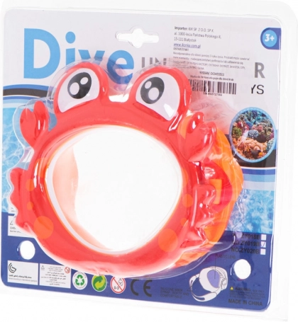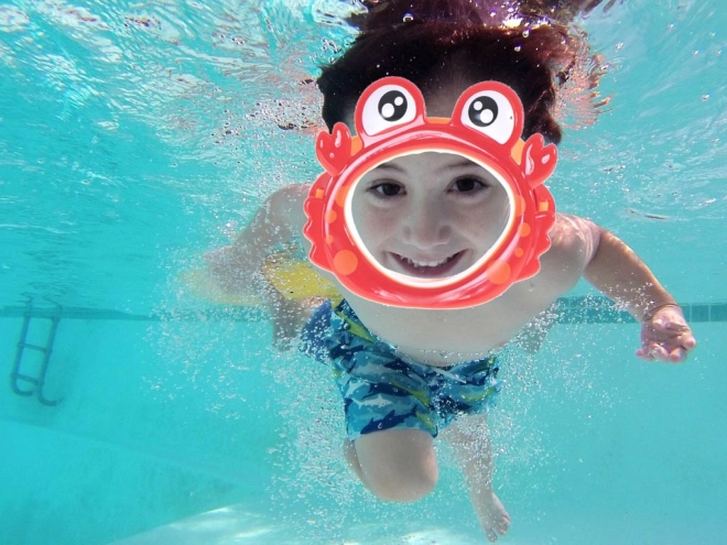 Această mască drăguță cu motiv de crab transformă fiecare baie într-o distracție. Datorită combinației de silicon moale și plastic rezistent, aderă bine pe față, protejează de stropii de apă și susține încrederea micilor înotători. Este potrivită pentru piscină, la mare și pentru vacanța de vară.