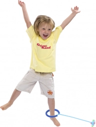 Jocul este intuitiv: fixează cercul pe picior, rotește-l și, cu celălalt picior, sari peste șnurul cu mingea. O provocare excelentă pentru copii și adulți – cine face mai multe rotații sau îl rotește cel mai repede?