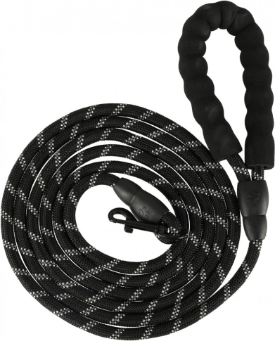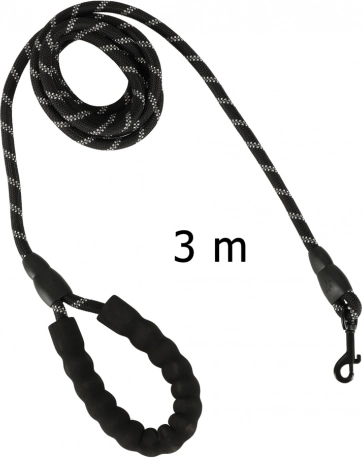 Lesă fiabilă din frânghie rezistentă, cu carabină rotativă cromată, potrivită și pentru rase medii până la mari. Datorită lungimii de 3 metri, câinele dvs. are suficientă libertate, în timp ce dvs. păstrați un control excelent. Cusătura reflectorizantă crește vizibilitatea în amurg și pe timp de noapte, ceea ce o face o alegere sigură pentru plimbările zilnice.