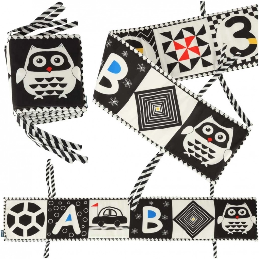 Modelele contrastante și grafica distinctă atrag atenția copilului și sprijină dezvoltarea abilităților sale vizuale.