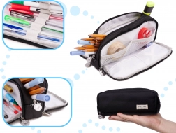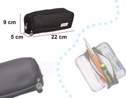 Penar universal pentru școală, universitate și birou. Trei compartimente separate cu fermoar facilitează organizarea și accesul rapid la creioane, markere, riglă și alte accesorii. În secțiunile laterale se găsesc buzunărașe și benzi elastice care ajută la fixarea fermă a accesoriilor.