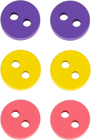 Setul de nasturi colorați și șnurul lung încurajează crearea de modele diverse, numărarea și învățarea culorilor.