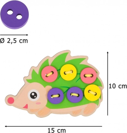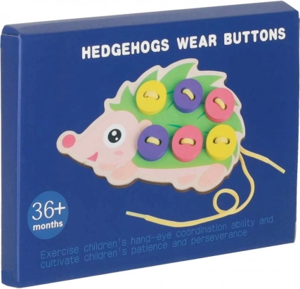 Arici din lemn pentru înșirat cu nasturi – jucărie educativă pentru motricitate fină
