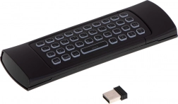 MX3 Pro este o telecomandă wireless versatilă care îmbină controlul de la distanță, o mini tastatură și un air mouse cu control prin mișcare. Datorită conexiunii de 2,4 GHz și receptorului USB nano, funcționează imediat fără instalare. Senzorul de mișcare integrat transformă telecomanda într-un mouse – este suficient să miști mâna, iar cursorul îți urmează precis mișcările.