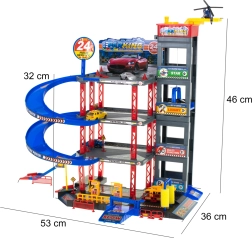 Cu mai multe niveluri de parcare, opțiuni de joc pentru mașinuțe și elicopter, garajul de parcare oferă distracție nelimitată și posibilități de dezvoltare a fanteziei copiilor.