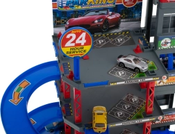 Garajul de parcare pe nivele este echipat cu multe niveluri pentru parcare și joc, permițând plasarea și depozitarea nu doar a mașinuțelor incluse în set, ci și a altor vehicule ale copilului dumneavoastră. Liftul acționat manual oferă o experiență realistă, în timp ce stația de benzină și spălătoria adaugă la posibilitățile interactive.