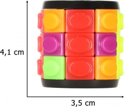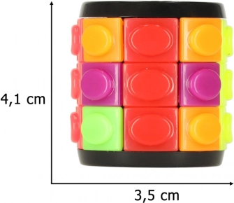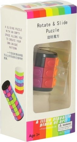 Un puzzle logic distractiv și inteligent, în formă de cilindru cu trei rânduri, care îi va încânta atât pe copii, cât și pe adulți. Inelele rotative și spațiul liber permit mutarea pieselor colorate și aranjarea culorilor în ordinea corectă. Excelent pentru antrenarea răbdării, concentrării și motricității fine. Ideal ca joc de buzunar pentru călătorii, la școală sau la birou. Cilindru rotativ, 3 rânduri, învățare logică, distracție antistres.