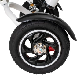 Roțile rezistente nu necesită umflare, fac față pietrișului și denivelărilor și oferă confort comparabil cu anvelopele gonflabile.