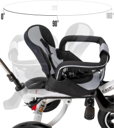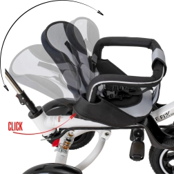 Cu un singur buton rotești scaunul cu fața sau cu spatele la direcția de mers. Ideal pentru copiii mai mici care au nevoie să fie în contact cu părintele.