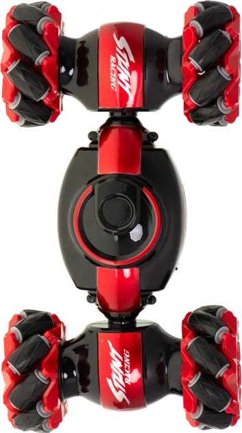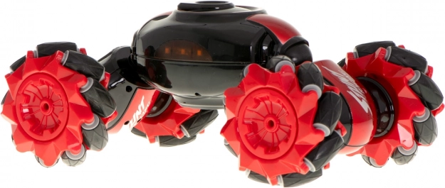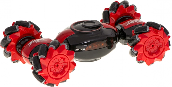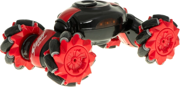 Mașină RC distractivă și rezistentă, cu dublu control, pentru condus dinamic și trucuri. Datorită roților multidirecționale, rotirilor la 360° și celor două moduri de condus (race/off-road), face față sprinturilor rapide și terenului dificil. Pachetul include două controlere: joystick clasic și control prin gesturi Gravity Sensor cu frecvență 2,4 GHz.