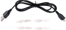 În pachet găsiți drona X20P, telecomandă 2,4 GHz, acumulator, încărcător USB pentru acumulator și un set de elice de rezervă.