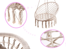 Corde rezistente cu împletitură specială și cadru metalic asigură siguranța în timpul relaxării. Poți fi sigur că leagănul te va ține mult timp.