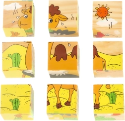 Puzzle-ul din lemn Safari 3D 6v1 este un instrument perfect pentru învățare și distracție într-un singur loc. Cu nouă cuburi din lemn, fiecare având dimensiuni de 3,5 cm x 3,5 cm x 3,5 cm, puteți crea șase imagini diferite cu animale - panda, șarpe, maimuță, struț, cangur și cămilă. Întregul puzzle măsoară 10 cm x 10 cm x 3,5 cm.