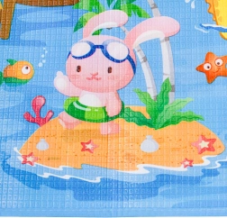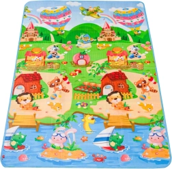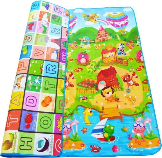 Un covoraș practic și distractiv pentru copii, care îmbină joaca și învățarea. O față afișează alfabetul, cealaltă un tărâm de basm cu animale. Datorită materialului moale covorașul izolează de frig, amortizează căderile și se curăță ușor – este suficient să fie șters cu o cârpă umedă. Pliabil și ușor, ideal pentru camera copiilor.