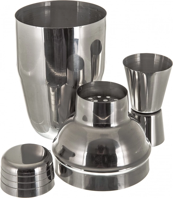 - Shaker tripartit cu capacitate de 0,75 L, înălțime totală de 24 cm