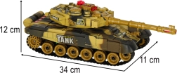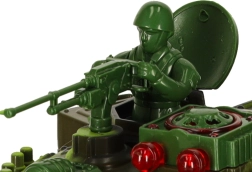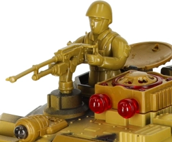 Șasiul cu șenile și benzi din cauciuc moi asigură tracțiune bună, turela rotativă se întoarce până la 300°, iar tunul în infraroșu permite tragere sigură la distanță scurtă. Iluminarea LED spectaculoasă și efectele sonore bogate ale motorului, tunului și mitralierei intensifică atmosfera unui câmp de luptă autentic. Plasticul de calitate și execuția atentă rezistă la luni de distracție.