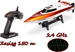 Bucură-te de curse pline de adrenalină pe apă cu barca RC FT009. Oferă viteză de până la 30 km/h, control 2,4 GHz cu rază de până la 150 m și structură durabilă și etanșă. Barca ușor de manevrat, cu telecomandă tip pistol și funcție de auto-redresare pentru navigare în siguranță, încântă atât începătorii, cât și avansații.