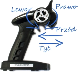 Telecomanda ergonomică tip pistol cu servodirecție precisă asigură control stabil fără interferențe și o rază de până la 150 de metri.