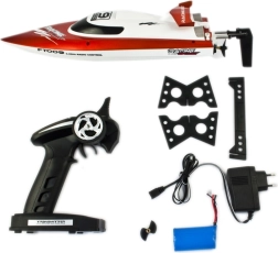 - Barcă FT009, transmițător 2,4 GHz, acumulator, încărcător USB, suport, elice de rezervă